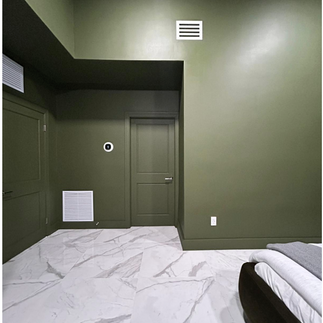 Matte Walls: We selected a matte paint finish because it absorbs light and creates a soft, luxurious feel.